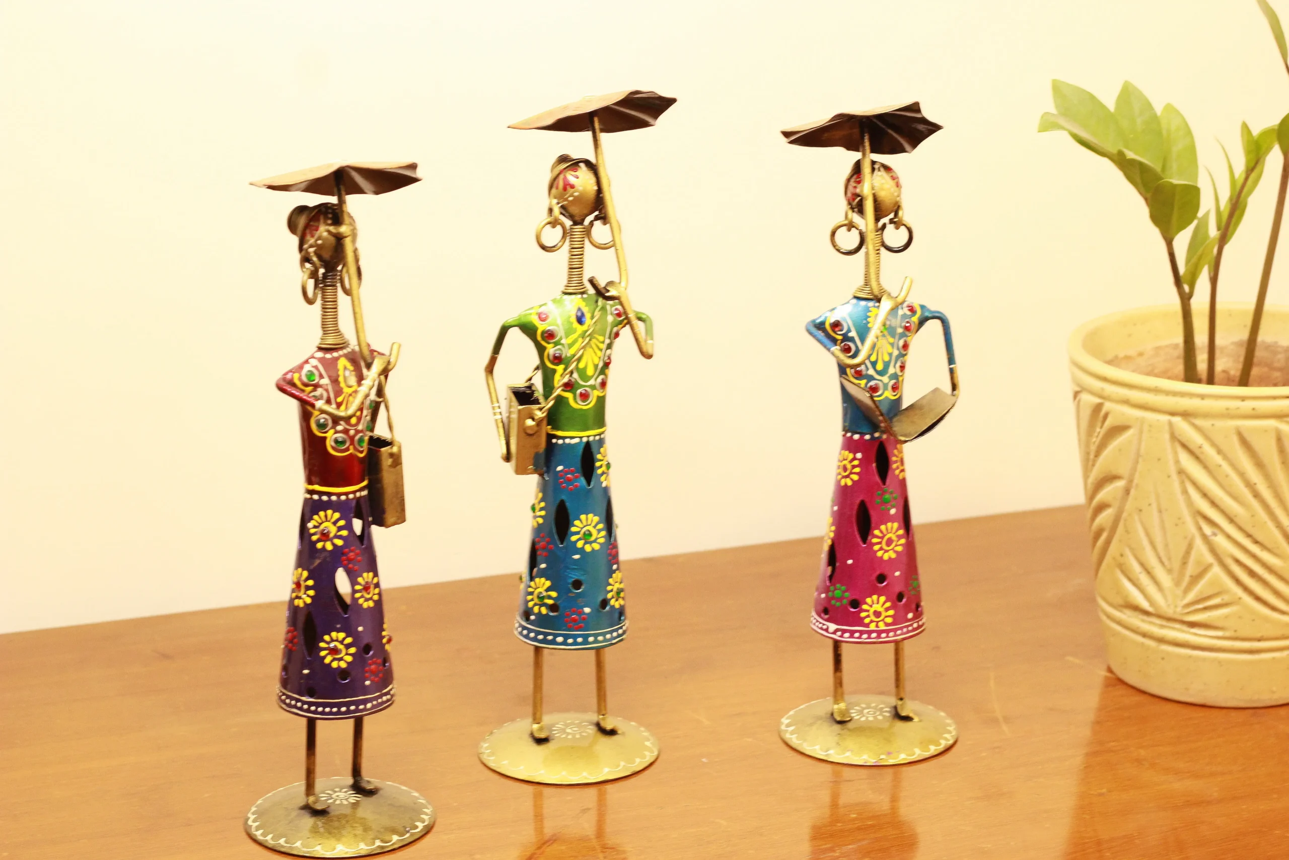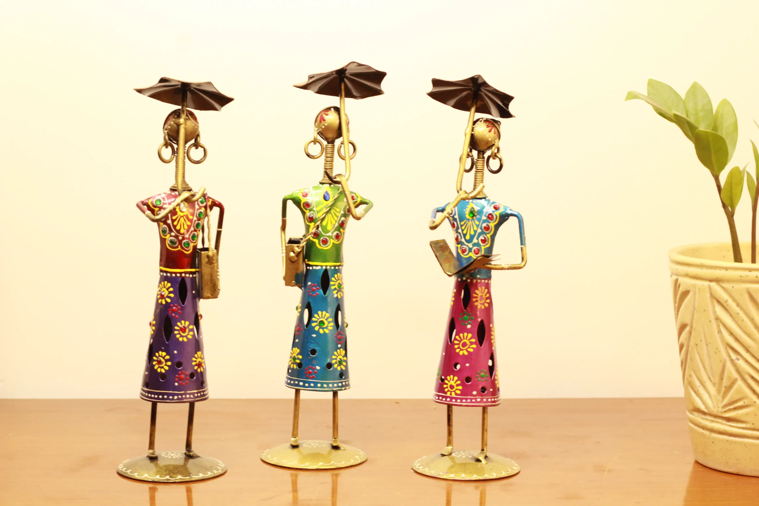 This set of 3 umbrella-wielding ladies adds a whimsical and artistic touch to your decor, perfect for showcasing traditional charm.